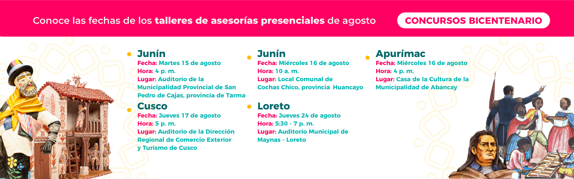 Los Concursos Bicentenario convocan a agentes culturales, académicos, docentes y ciudadanos a nivel nacional para presentar obras que impulsen la reflexión sobre los retos del Perú; conociendo de esta manera, las diversas perspectivas y formas de comprender nuestra vida republicana, costumbres y tradiciones desde una mirada local y regional.